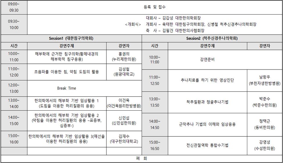 ‘2015 전국한의학학술대회’ 영남권역 개최‘2015 전국한의학학술대회’ 영남권역 개최 ‘21세기 실용한의학’을 주제로 한 전국학술대회 영남권역 강의가 개최된다. 사단법인 대한한의학회(회장 김갑성)가 9월 13일 부산 벡스코(BEXCO)에서 ‘‘2015 전국한의학학술대회(영남권역)’를 개최한다. 대한침구의학회와 척추신경추나의학회가 주관하는 이번 행사에서는 ‘약침과 도침 활용법’과 ‘추나기법의 활용’ 등에 대한 강의가 준비돼 있다. 대한침구의학회에서는 △해부학에 근거한 침구의학(홍권의 대한한의사협회 학술이사) △초음파를 이용한 침, 약침 도침의 활용(김성철 대한한의학회 학술이사) △도침을 이용한 허리질환의 응용(이건목 세계도침학회 부회장) △약침을 이용한 허리질환의 응용(신민섭 우석대 교수) △매선을 이용한 허리질환의 응용(김재수 대구한의대 교수) 등 침 치료에 저명한 강사들을 대거 포진했다. 홍권의 학술이사는 내경관점의 침 치료 방법을 소개한다. 침 치료에 영항을 미치는 시술 부위와 시술 도구, 시술 방법, 시술 빈도 및 기간 등을 자세히 설명하며, 요통의 해부학적 구조 및 치료도 개괄적으로 다룰 예정이다. 김성철 학술이사는 초음파를 이용해 오수혈의 주요경혈영상 소개와 자침 깊이, 치료 안전성을 위해 피해야 할 구조물(혈관, 신경 등) 등을 발표한다. 또 자극을 위해 사용되는 약침과 도침을 결합한 새로운 치료법을 주요 질환 치료 장면을 통해 소개한다. 이건목 부회장은 좌골신경통의 개괄적 내용을 다룬다. 한의학에서 비수술적 방법으로 유명한 도침 원리침을 이용한 치료 사례, 방법도 주목할 부분이다. 신민섭 교수는 임상에서 흔히 볼 수 있는 요추디스크탈출증, 척추관협착 등 허리와 관련된 다빈도 질환을 중심으로 약침치료 개괄을 소개한다. 김재수 교수도 한방성형이나 근골격계 질환에 효과가 좋은 매선을 효과적으로 이용하는 방법을 강의한다. 한편 침구의학회와 같은 날 강연을 진행하는 척추신경추나의학회는 △추나치료를 하기 위한 영상 진단(남항우 척추신경추나의학회 부회장) △척추질환과 정골추나기법(박준수 경남한의사회 회장) △근막추나 기법의 이해와 임상응용(정택근 척추신경추나의학회 학술위원) △전신관절역학 통합수기법(강영성 척추신경추나의학회 학술위원) 등 다양한 추나기법의 활용을 다룰 예정이다. 남항우 부회장은 보다 정확한 변위 상황과 병리적 상태의 감별진단 등이 필요한 추나 진단에 대해 영상 진단을 활용하는 방법을 소개한다. 방사선사진과 자기공명영상 등을 통해 척추의 상태를 판별한 후 보다 정확한 추나 치료에 활용할 수 있다는 것을 핵심으로 한다. 박준수 회장은 관절가동추나기법과 관절교정추나기법 등을 포괄적으로 지칭하는 정골추나기법에 대해 강의한다. 주로 경추, 흉추, 요추, 골반 등에 발생하는 디스크질환으로서 임상에서 흔히 볼 수 있는 요추추간판 탈출증 등에 대해 정골 기법 진단과 치료를 설명한다. 정택근 학술위원은 단축 및 긴장되거나 신장 및 약화된 경근조직에 대해 최적의 자세를 찾아 시술자의 손으로 점진적인 압박 등을 가해 회복, 치료하는 근막추나기법 강의를 준비했다. 근막추나는 두경부, 체간부, 견갑/상지부 등에 적용한다. 강영성 학술위원은 Whole Body 관점에서 근육과 관절의 운동 연쇄관계를 파악하고 생체역학적 운동법칙에 대한 이해를 바탕으로 한 전신관절역학기법을 소개한다. 근육의 신장, 강화 및 관절가동성을 확보하는 수기교정법으로서 구심성 치료접근과 원심성 치료 접근을 모두 만족시키는 통합 수기법으로 알려져 있다. 대한침구의학회와 척추신경추나의학회가 주관하는 이번 행사에 참가를 원하는 사람은 학술대회 전용 홈페이지(www.skoms.org/conference)를 통해 오는 31일까지 접수할 수 있다. 문의사항은 대한한의학회 사무국(02-2658-3630)에서 받고 있다. -